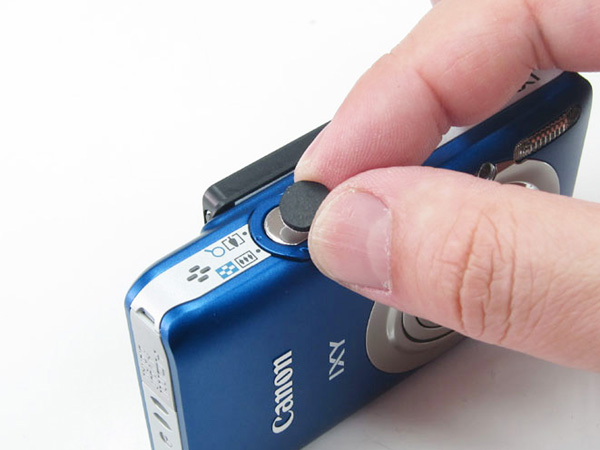 IXY 210Fのシャッターボタンに付属のシャッターボタンプロテクターを貼ります。 |