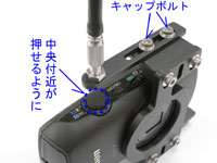 上部パーツをカメラ側に押しながらキャップボルト(2本)締め付けて固定します。 |