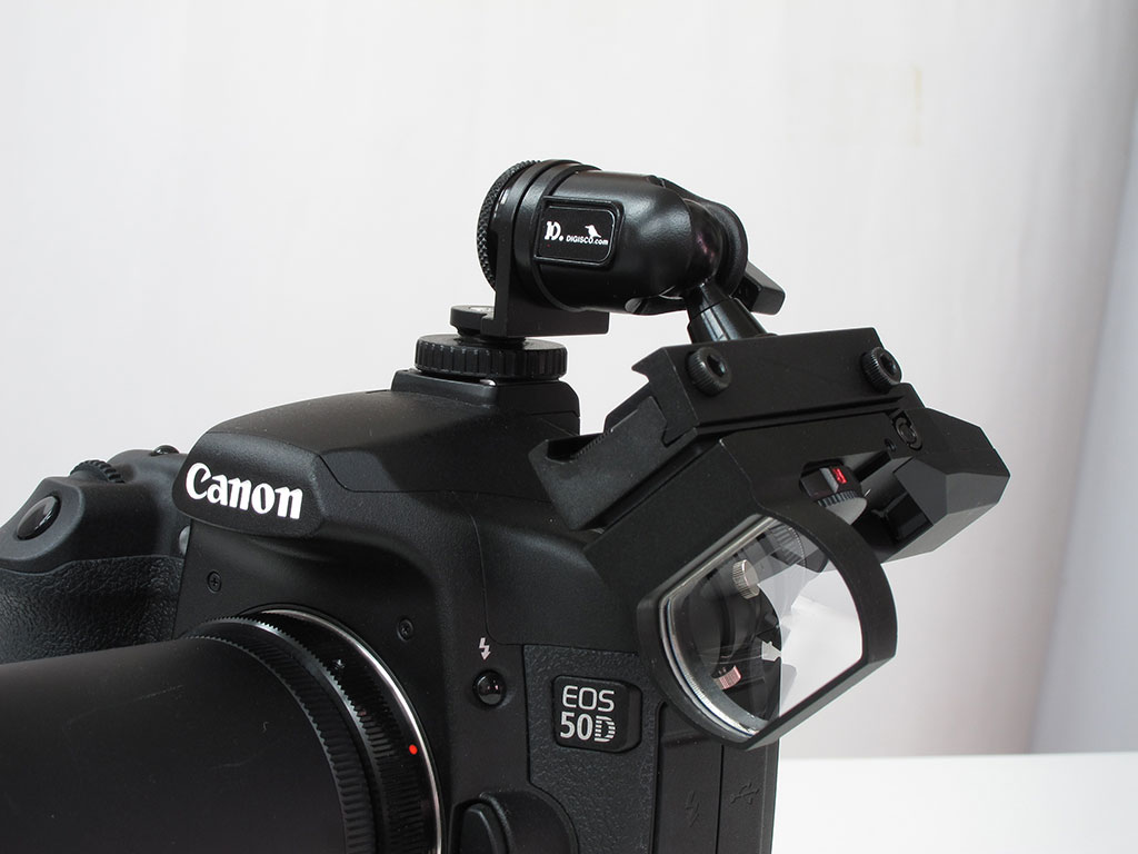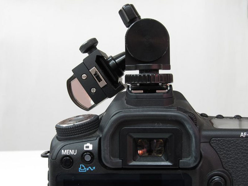 ホットシューに縦に差し込むと眼幅の狭い場合、有効になります |