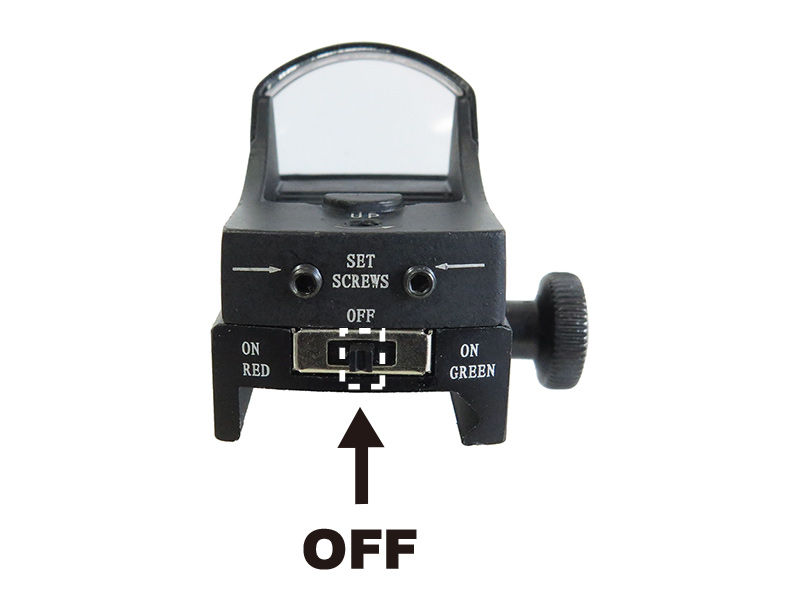DOS-HS06/07/1003.の照準器では照準器後部にあるスイッチでドットの色を赤と緑に簡単に変更する事が可能です。